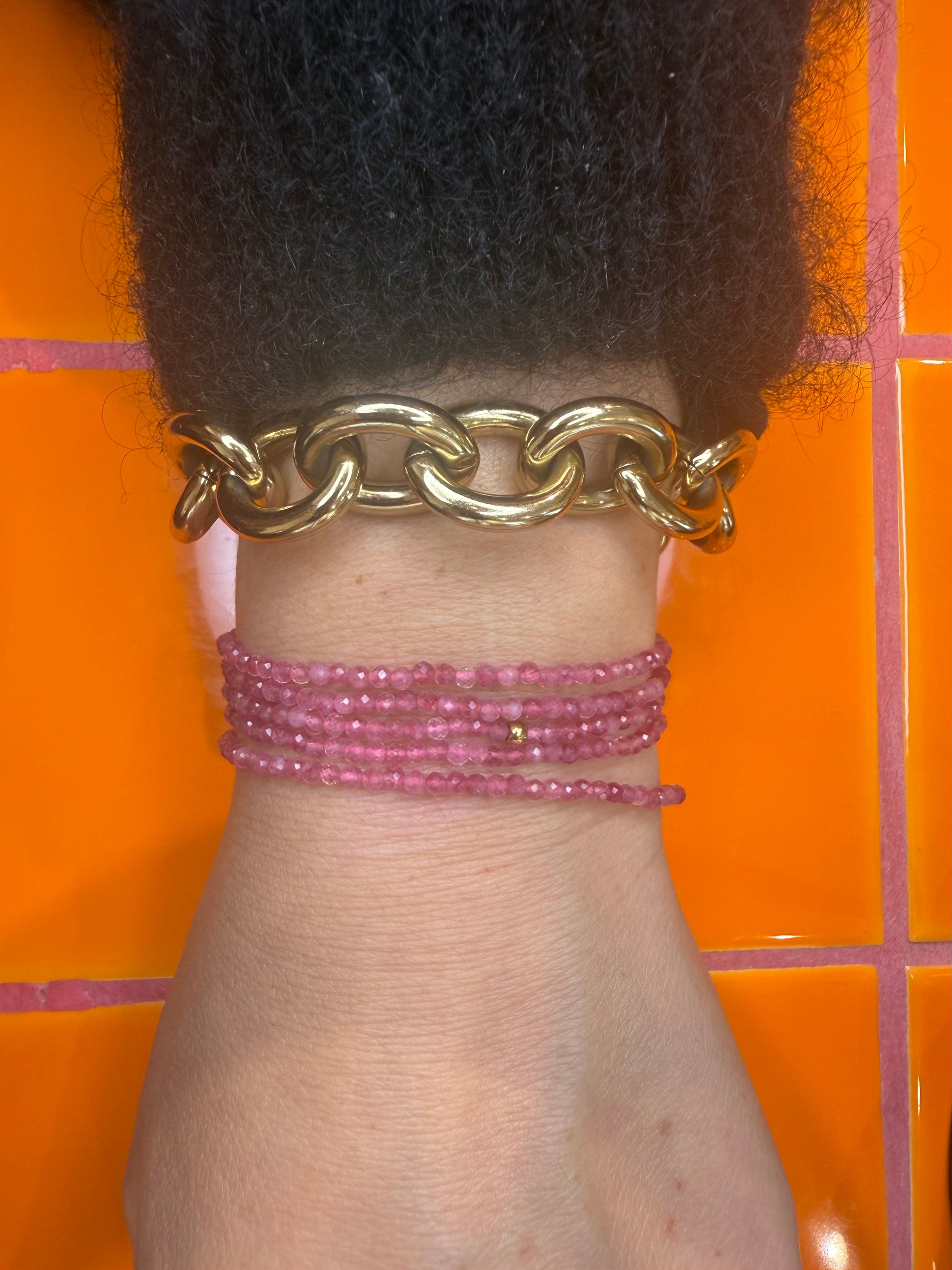 - multi options ( long necklace, double wrapped, wrapped bracelet and belly chain )