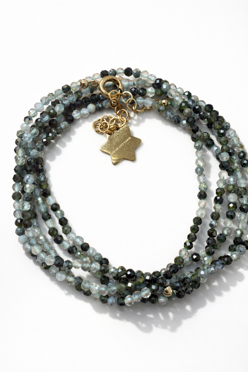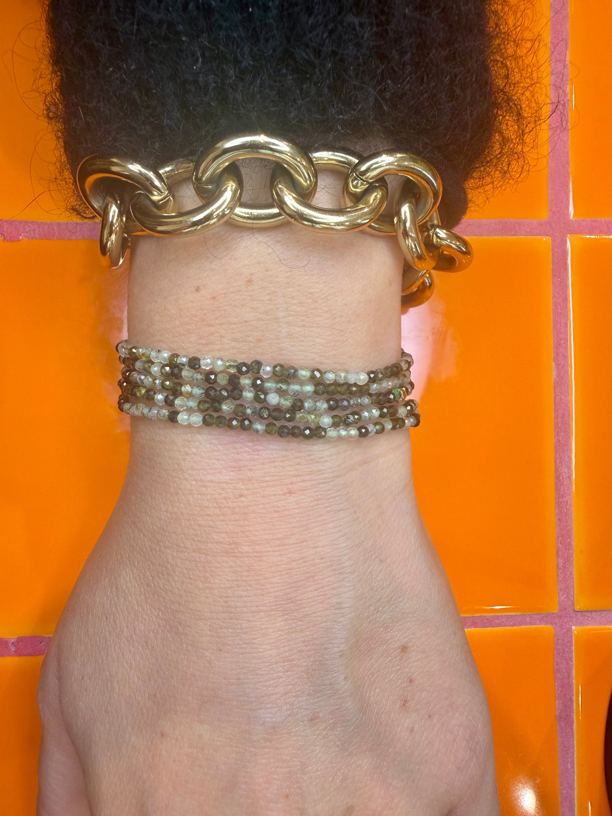 - multi options ( long necklace, double wrapped, wrapped bracelet and belly chain )